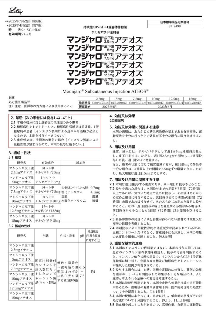 成分はチルゼパチド。GLP-1とGIPというホルモンに同時に作用する、世界初の二重作用薬です。