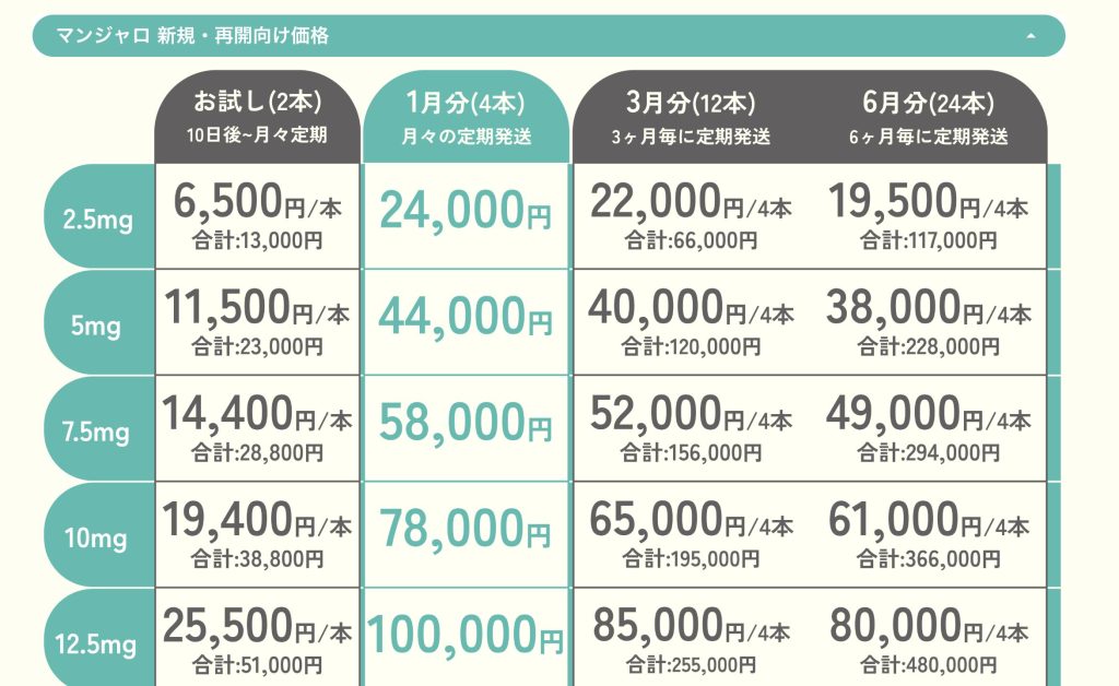 👉 他院では「同じ2.5mgで月2〜3万円」という価格も珍しくありません。